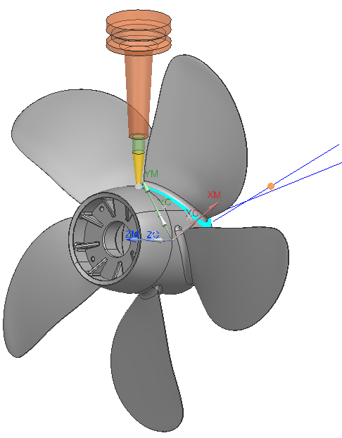 2.五轴加工螺旋桨,装夹方式,做简易夹具垫高80,